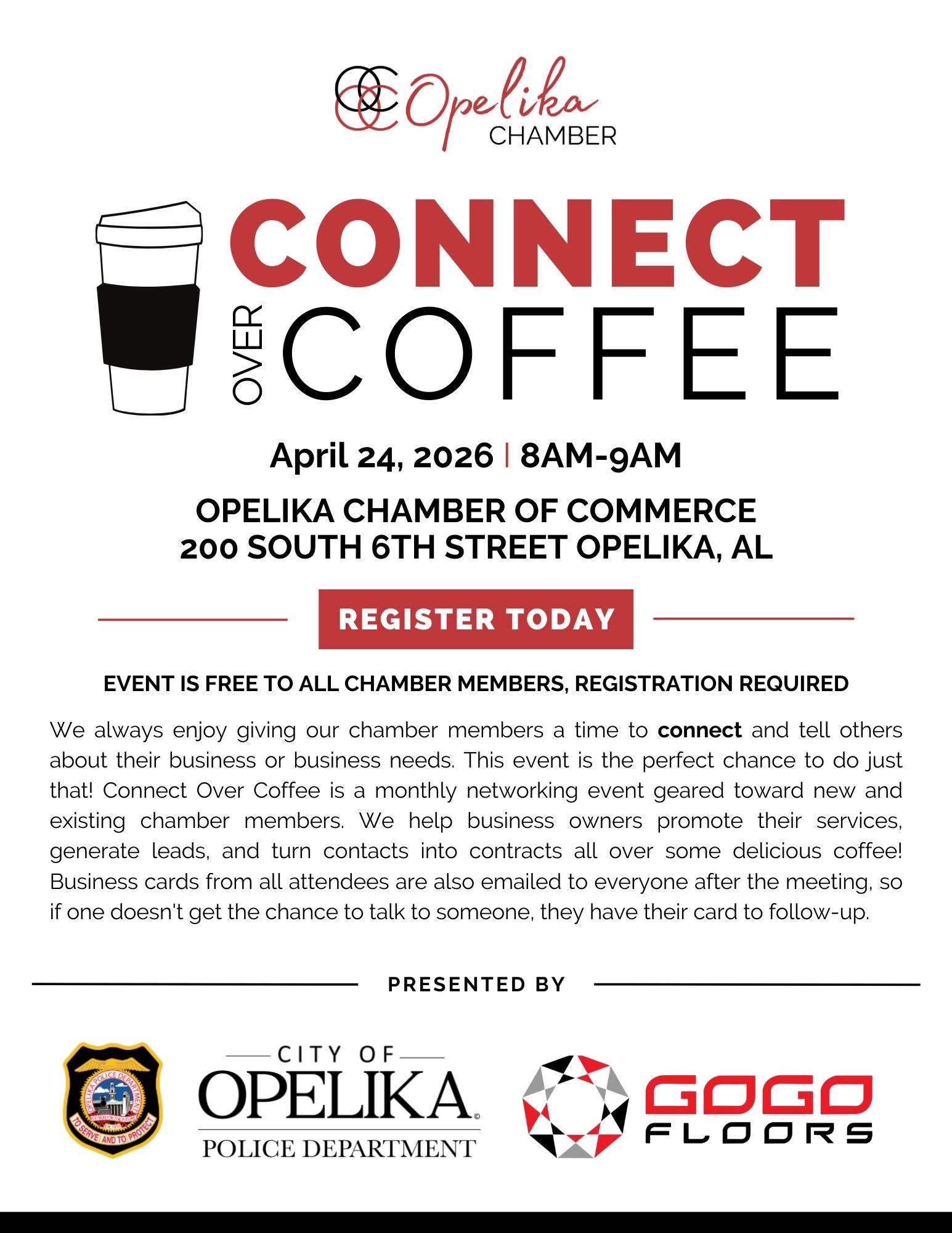 If you’re a new chamber member, don’t miss the New Member Orientation immediately following Connect Over Coffee from 9:30 AM to 10:30 AM. This session is designed to help you maximize your Chamber membership benefits and hit the ground running.