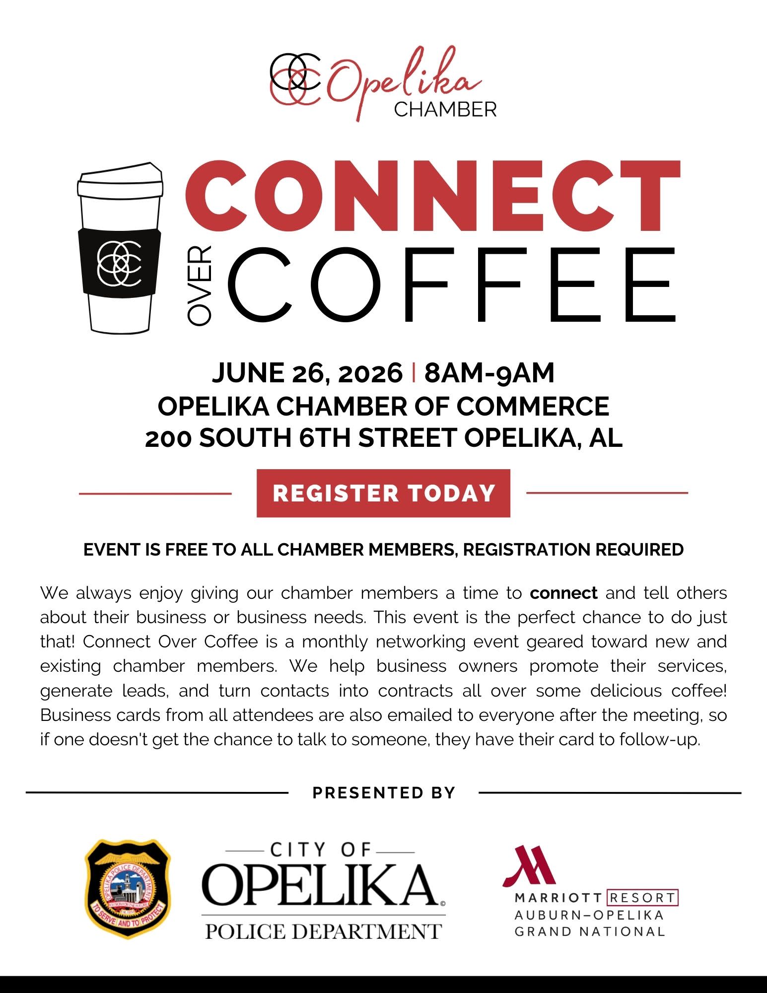 If you’re a new chamber member, don’t miss the New Member Orientation immediately following Connect Over Coffee from 9:30 AM to 10:30 AM. This session is designed to help you maximize your Chamber membership benefits and hit the ground running.
