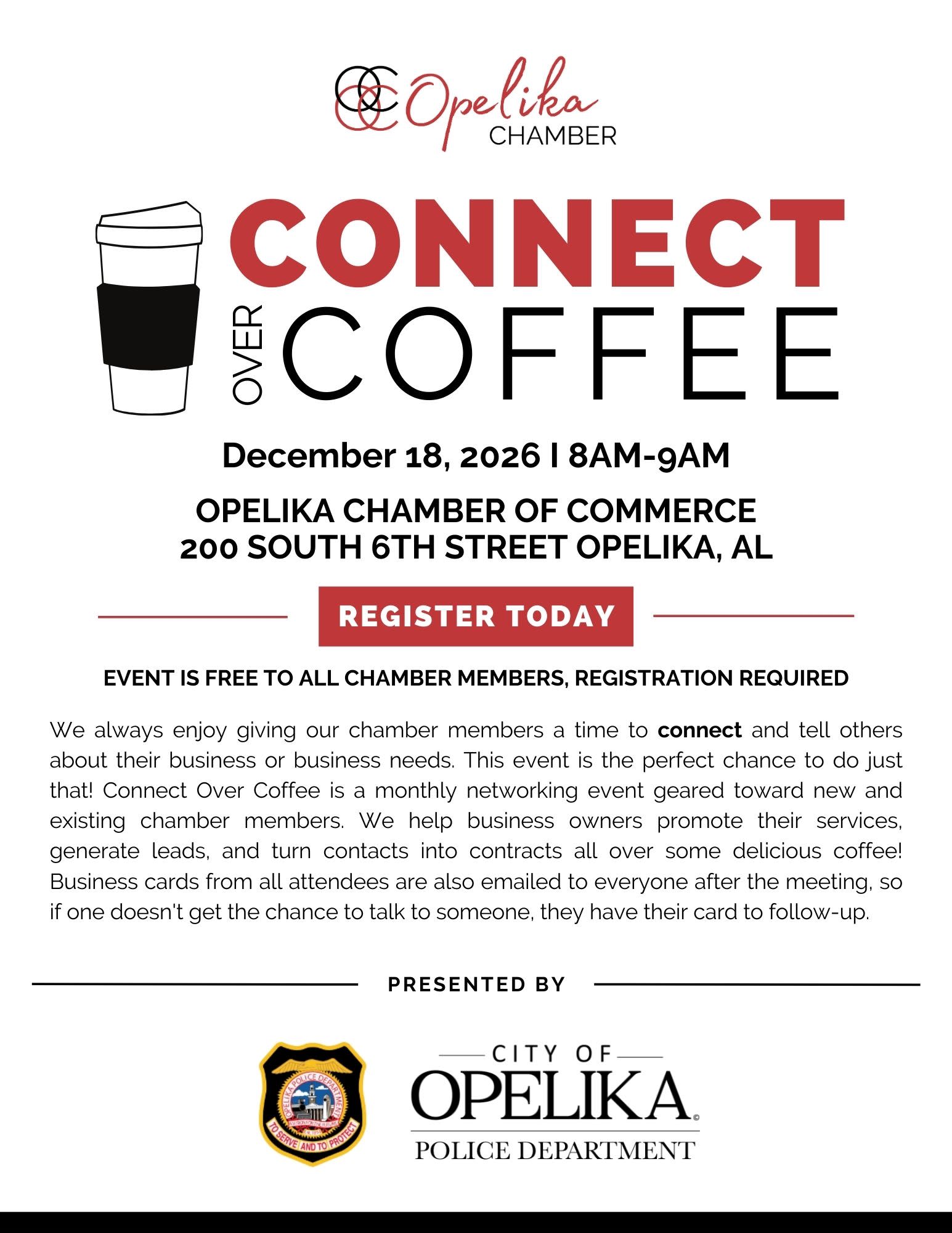 If you’re a new chamber member, don’t miss the New Member Orientation immediately following Connect Over Coffee from 9:30 AM to 10:30 AM. This session is designed to help you maximize your Chamber membership benefits and hit the ground running.